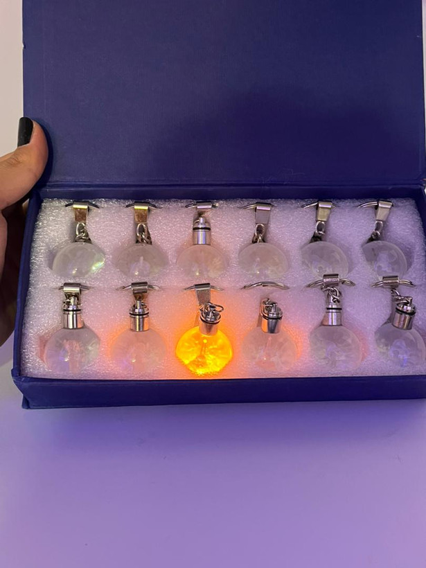 این گوی با باطری ساعتی کار میکند وباطری آن قابل تعویض است نور سرکلیدی ها هفت رنگ هست ومدام تغییر میکند توجه شود که برای روشن کردن چراغ آن فقط سری بالای واشر مشکی را بپیچانید