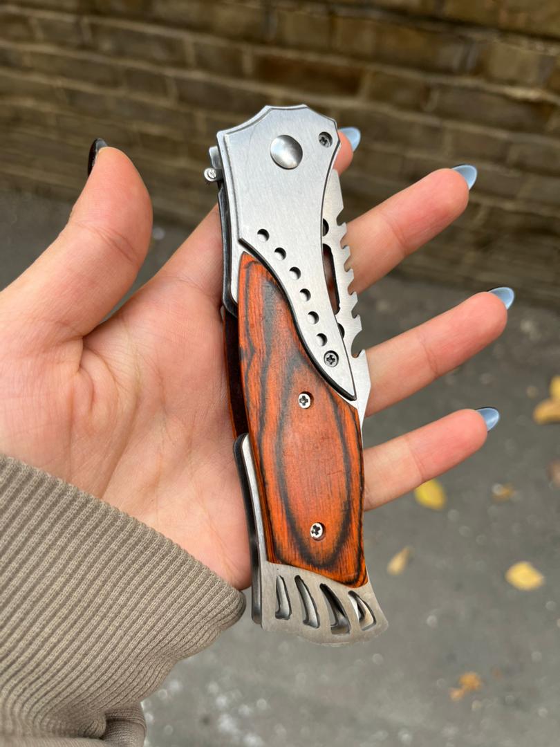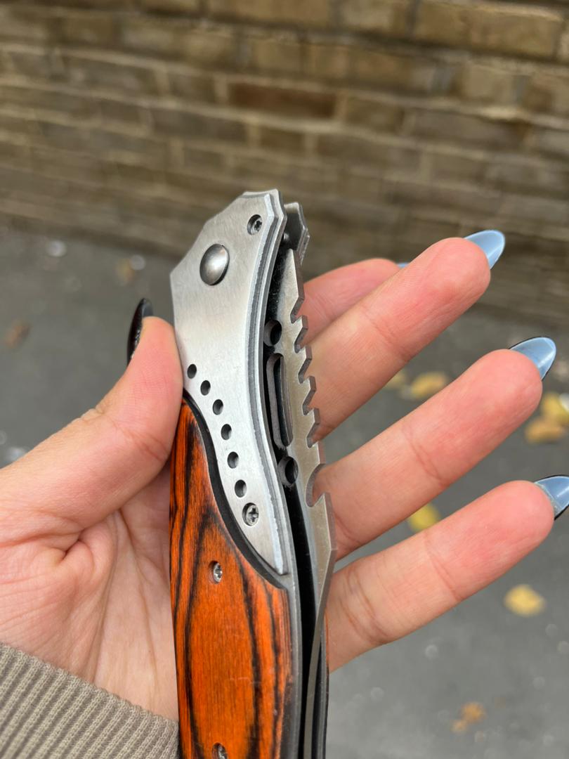 دسته ترکیبی از فولاد و چوب جلاخورده