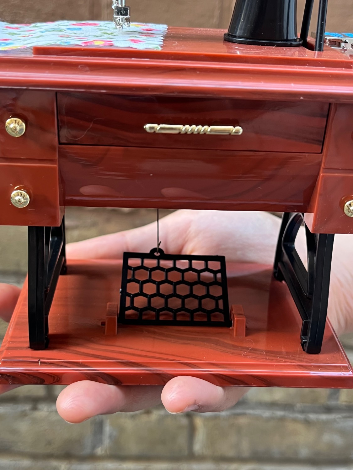 🖇همزمان با کوک و پخش موزیک، قسمتهایی از چرخ خیاطی مثل سوزن یا چرخ نیز حرکت میکنند