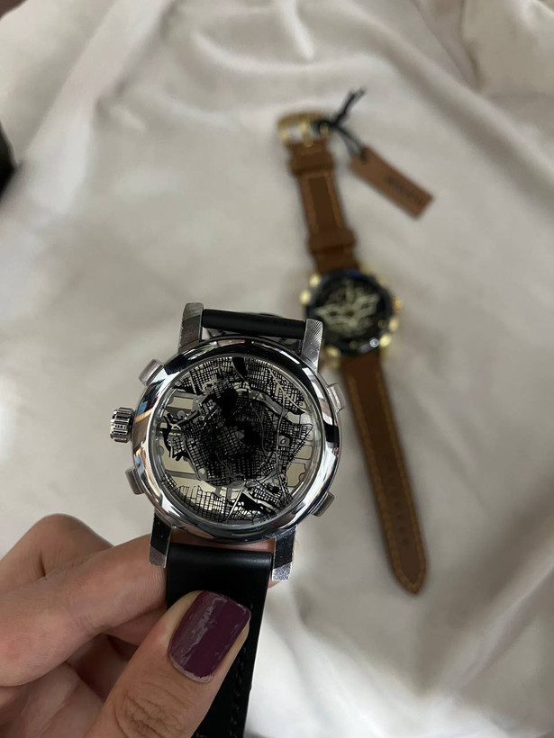 شیشه نشکن و شفاف با طرح بتمن که در پشت ساعت طرح نقشه طراحی