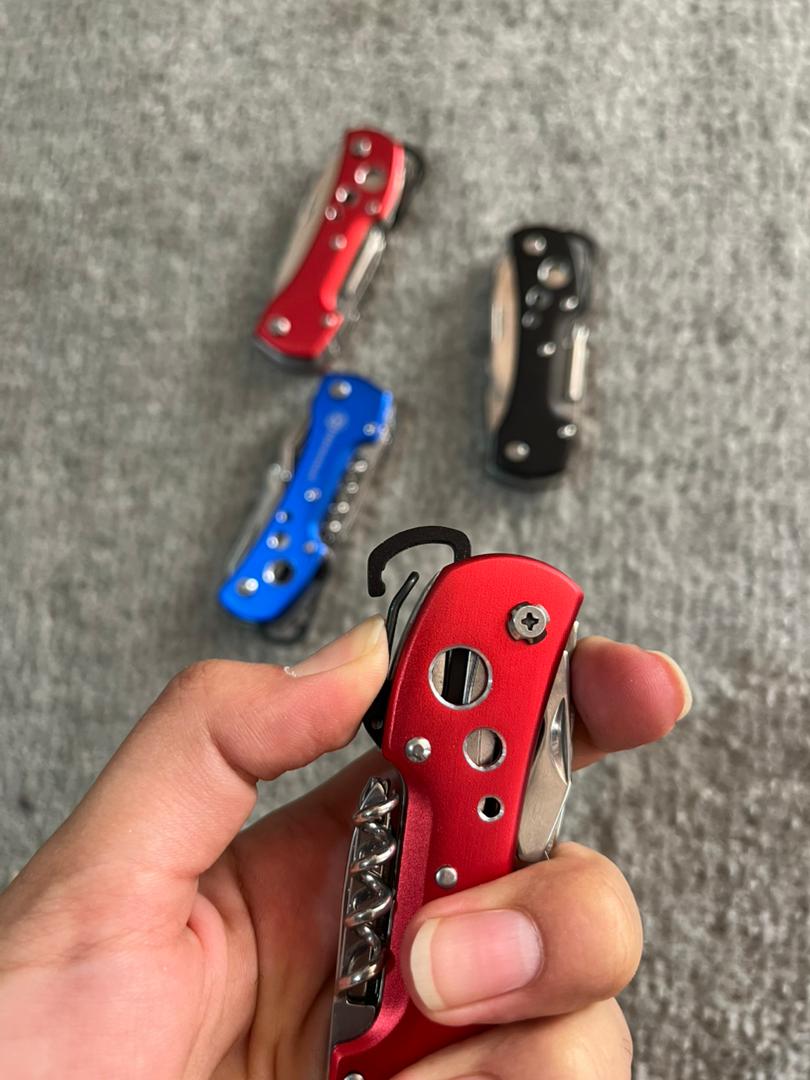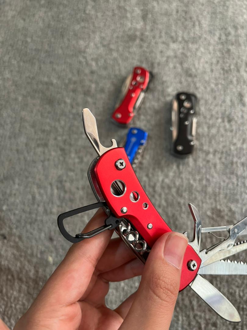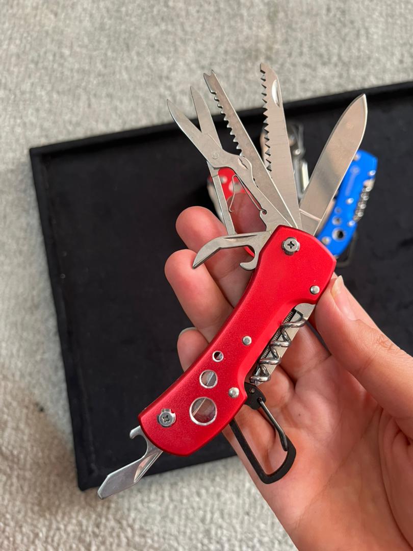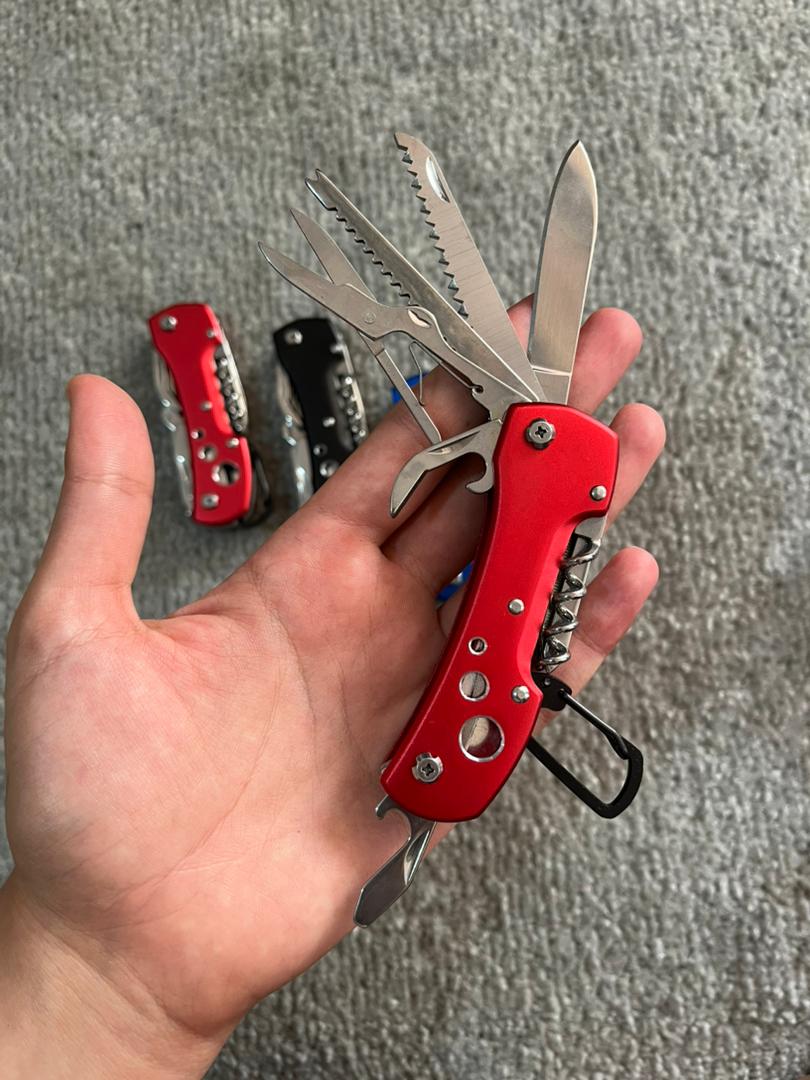 دارای [ چاقو -پیچ بازکن چهارسو -قیچی-در بازکن بطری و کنسرو-ناخنگیر- طناب بر-اره-قلاب کمری و ...]